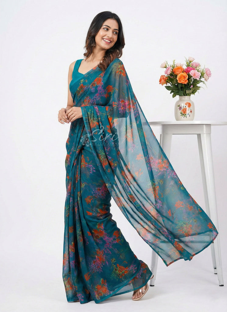 Authentic Garden Vareli Printed Nara Chiffon Saree