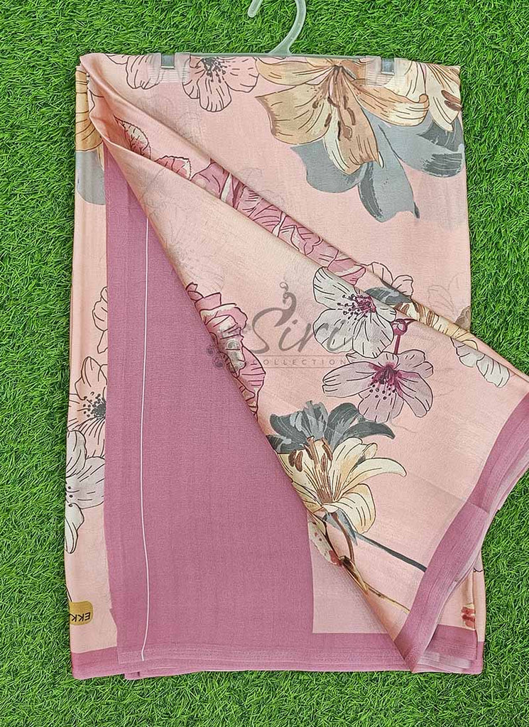 Description: Latest Beautiful Digital Print Satin Crepe Silk Saree