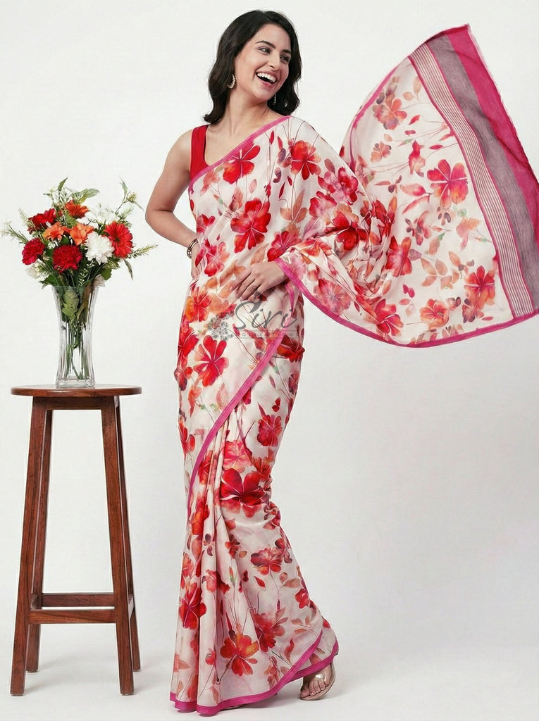 Description: Latest Beautiful Digital Print Satin Crepe Silk Saree