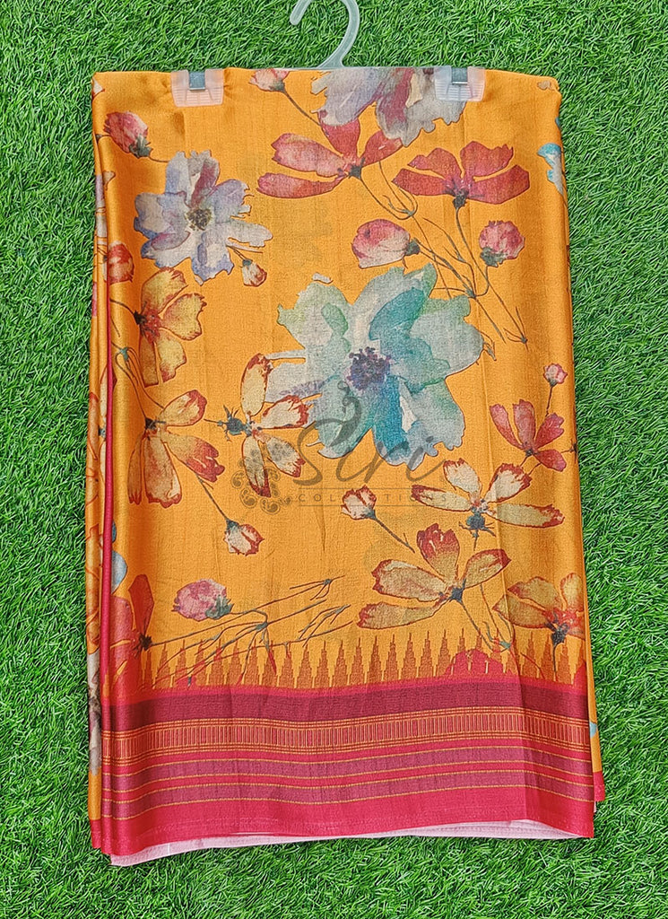 Description: Latest Beautiful Digital Print Satin Crepe Silk Saree