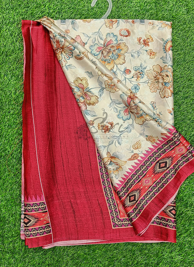 Description: Latest Beautiful Digital Print Satin Crepe Silk Saree