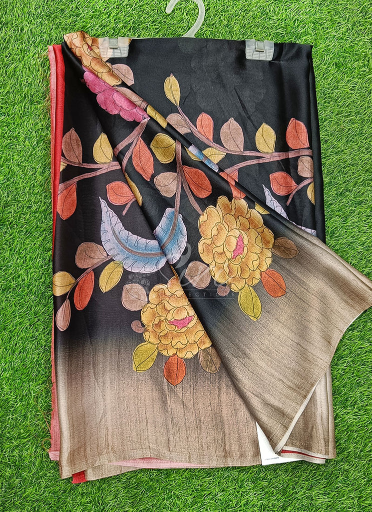Description: Latest Beautiful Digital Print Satin Crepe Silk Saree