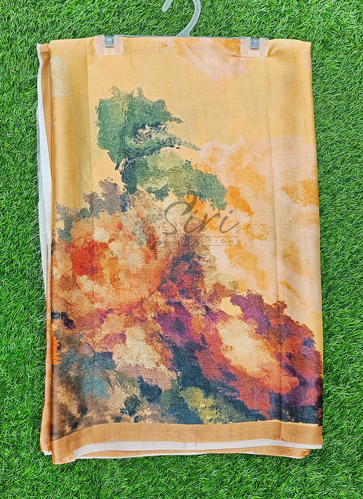 Description: Latest Beautiful Digital Print Satin Crepe Silk Saree