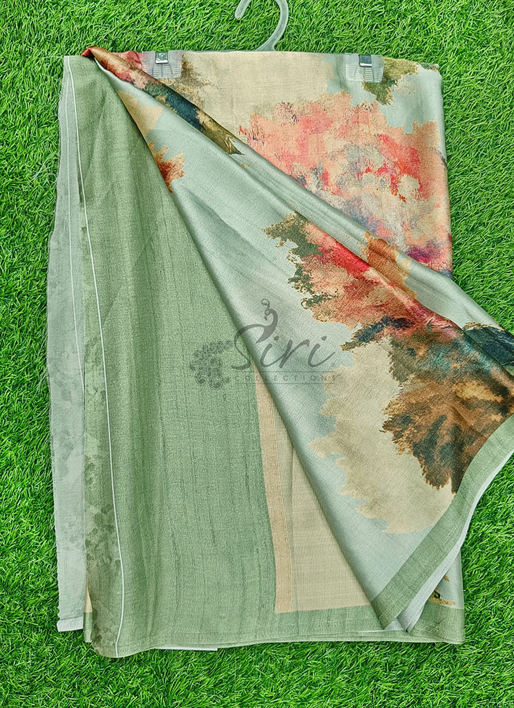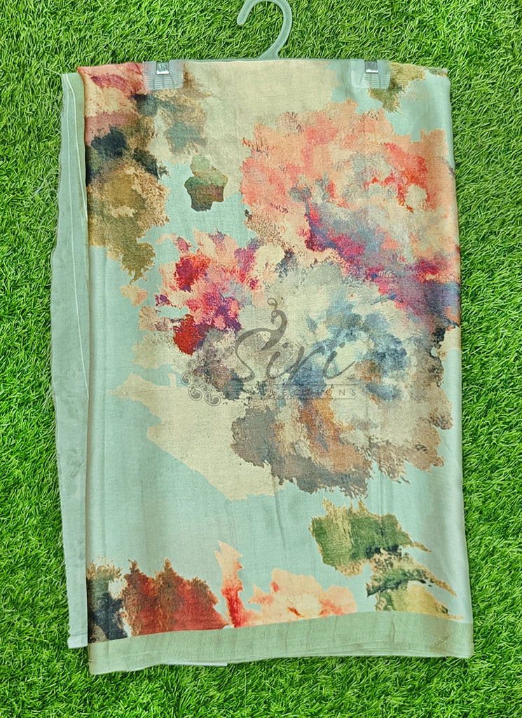 Description: Latest Beautiful Digital Print Satin Crepe Silk Saree