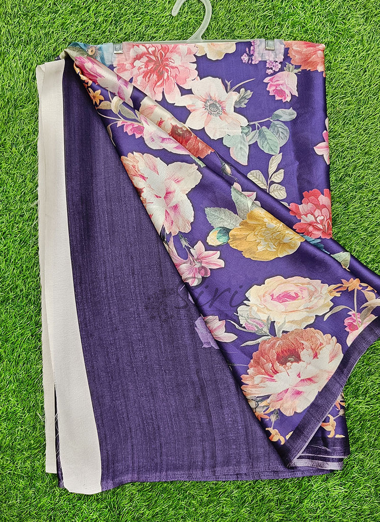 Description: Latest Beautiful Digital Print Satin Crepe Silk Saree