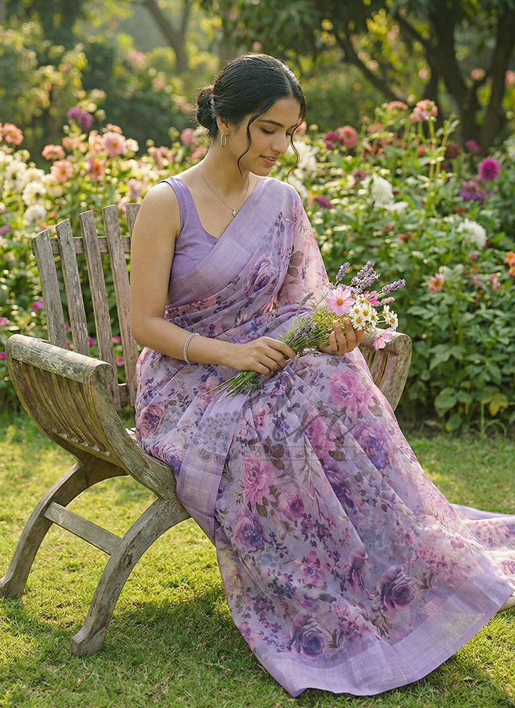 Description: Lovely Digital Print Georgette Saree in Satin Borders