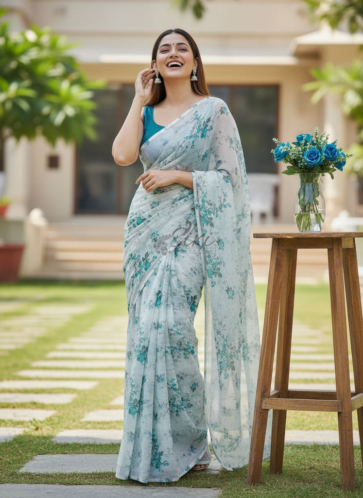 High Quality Garden Vareli Printed Nara Chiffon Saree