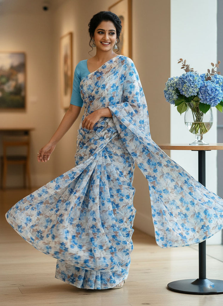 Description: Latest Beautiful Garden Vareli Printed Summer Roganza Saree