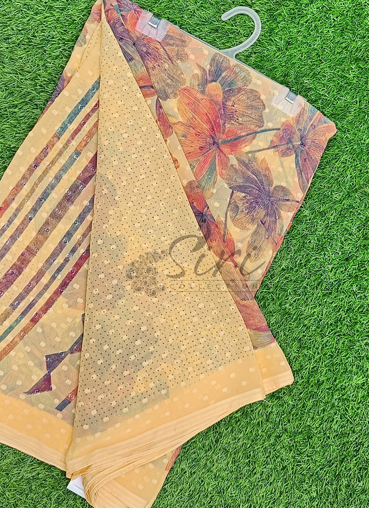 Description: Beautiful Soft Georgette Saree in Self Butis
