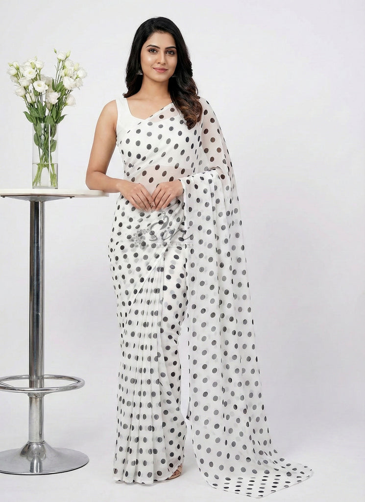 Lovely Printed Georgette Saree in Polka Dots Design