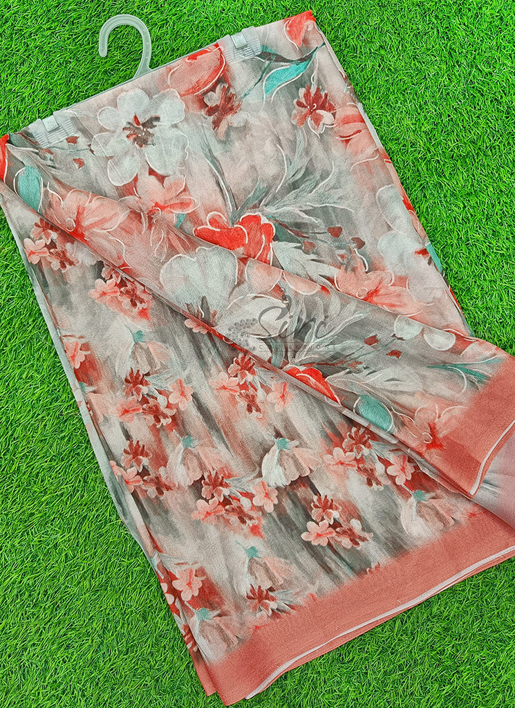 Beautiful Printed Chiffon Saree in Self Lines Texture