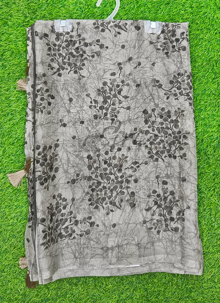 Beautiful Printed Chiffon Saree in Self Lines Texture