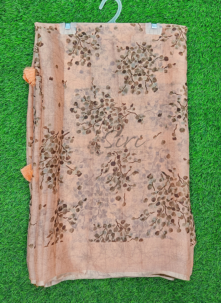 Beautiful Printed Chiffon Saree in Self Lines Texture
