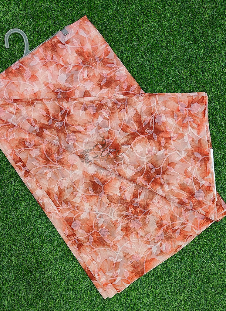 Description: Latest Beautiful Garden Vareli Printed Summer Roganza Brasso Saree