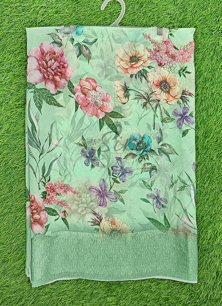 Description: Lovely Digital Print Georgette Saree in Satin Borders