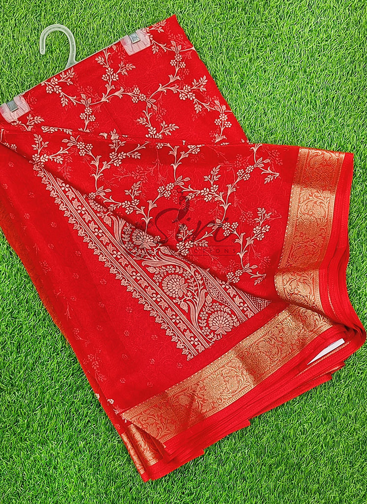 Description: Lovely Printed Georgette Saree in Self Design and Fancy Zari Borders