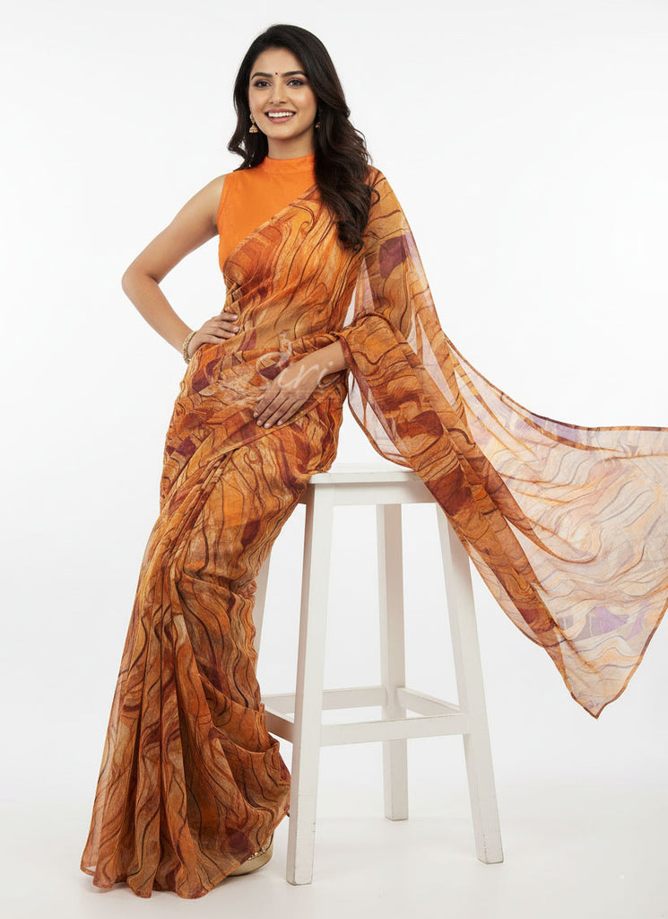 Authentic Garden Vareli Printed Nara Chiffon Saree