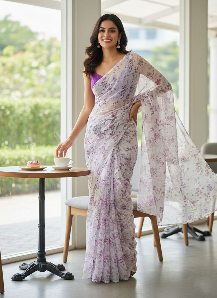 Authentic Garden Vareli Printed Nara Chiffon Saree