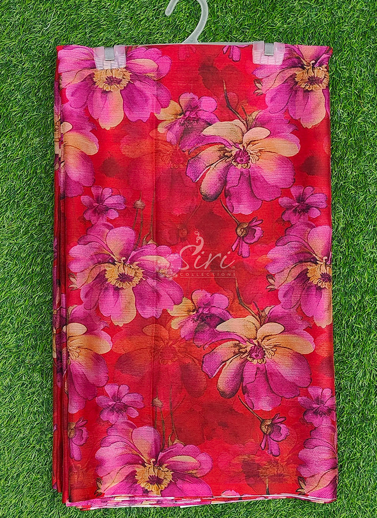 Description: Latest Garden Vareli Printed Nara Chiffon Saree (Pink Colour)