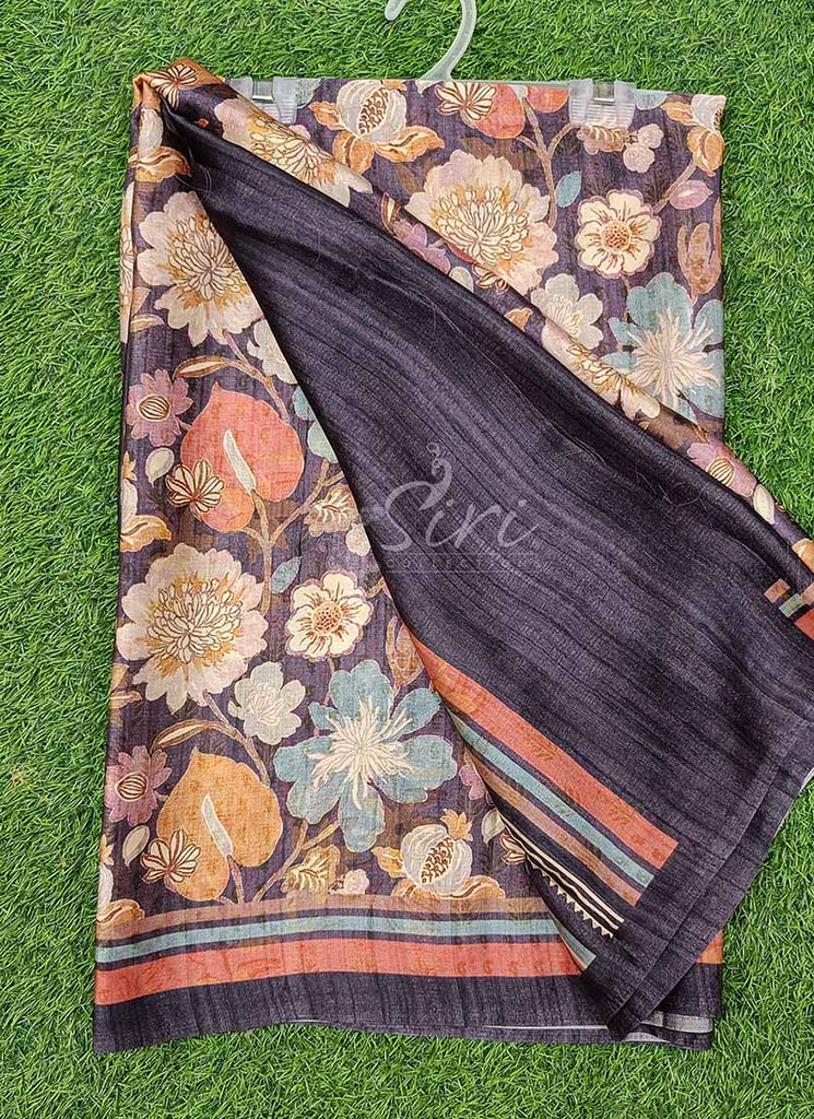 Description: Latest Beautiful Digital Print Satin Crepe Silk Saree