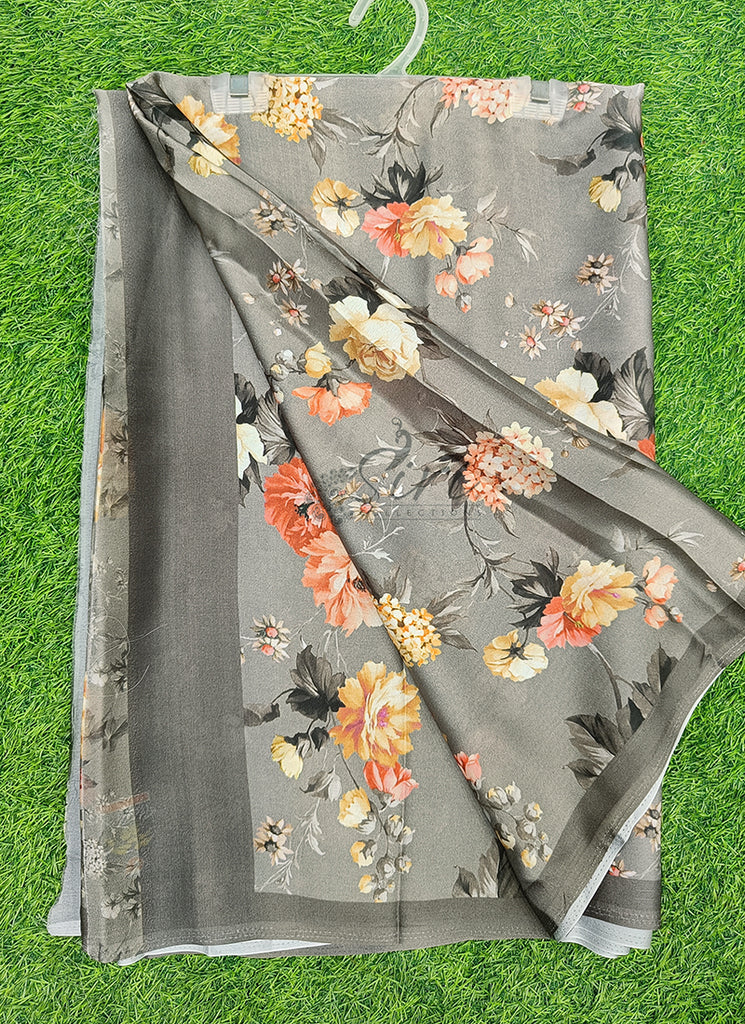 Description: Latest Beautiful Digital Print Satin Crepe Silk Saree