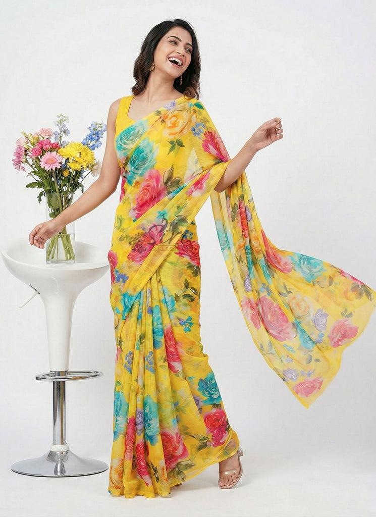 Latest Digital Print Nara Chiffon Saree with Blouse