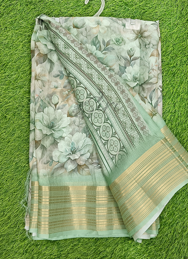 Description: Lovely Digital Print Moss Georgette Saree