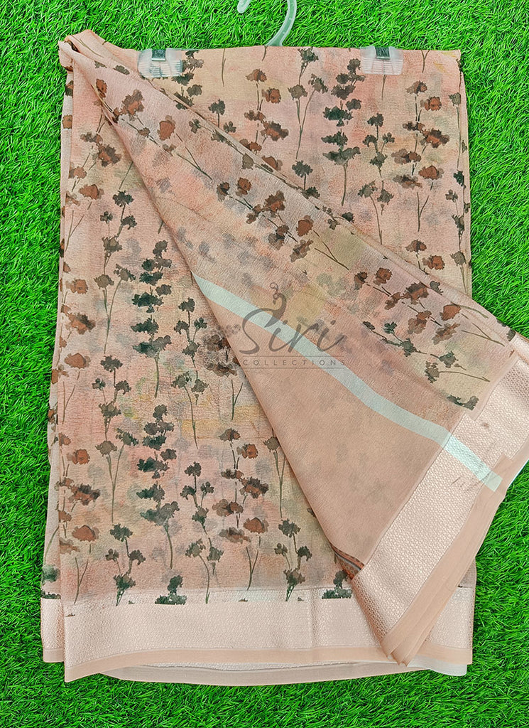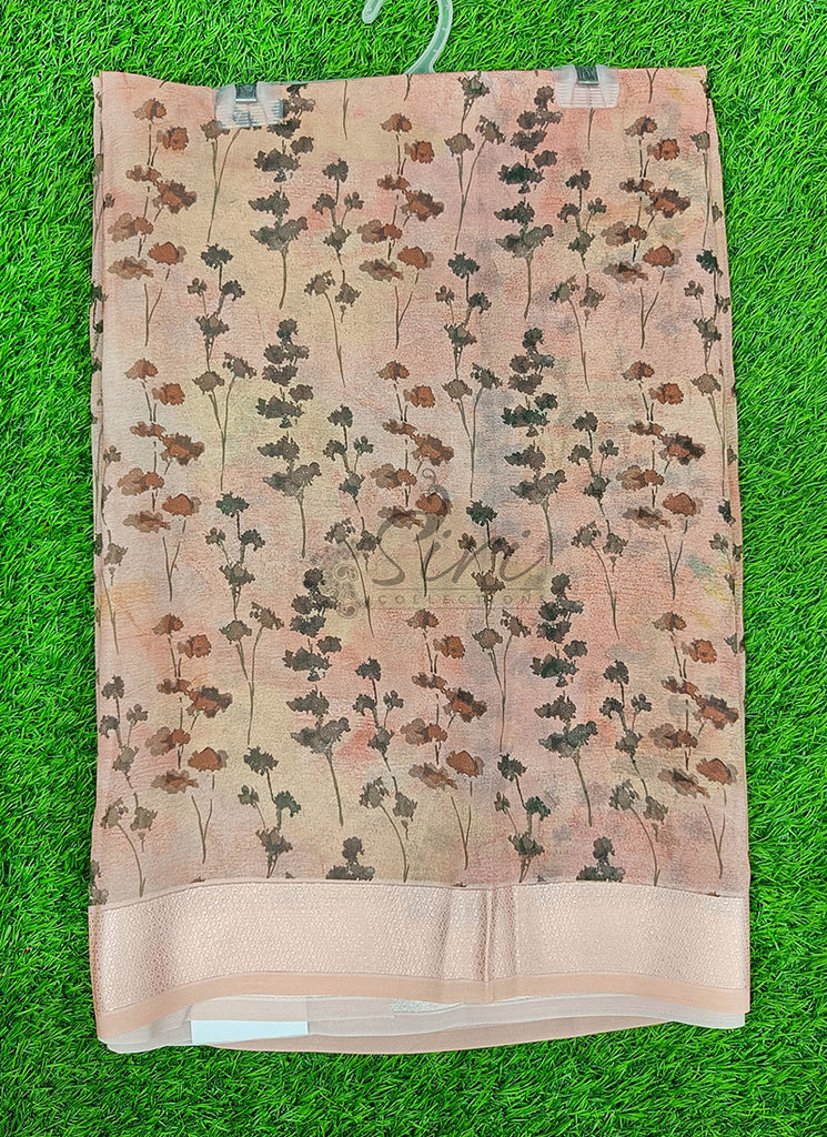 Description: Lovely Digital Print Shimmer Chiffon Saree in Self Soft Borders