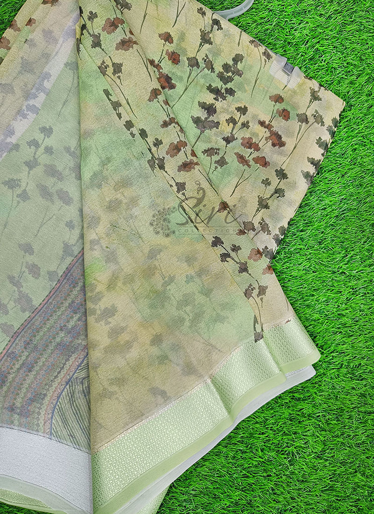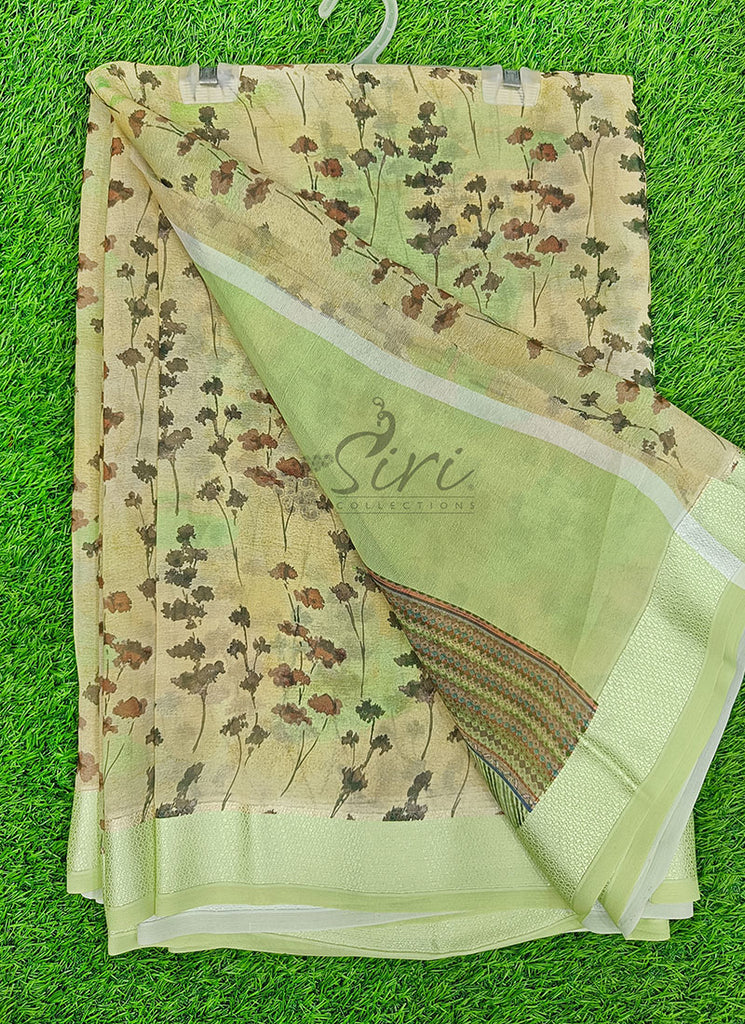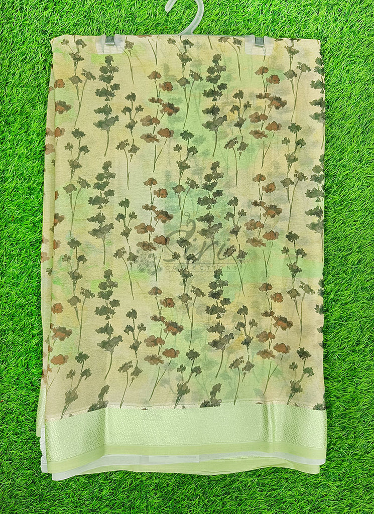 Description: Lovely Digital Print Shimmer Chiffon Saree in Self Soft Borders