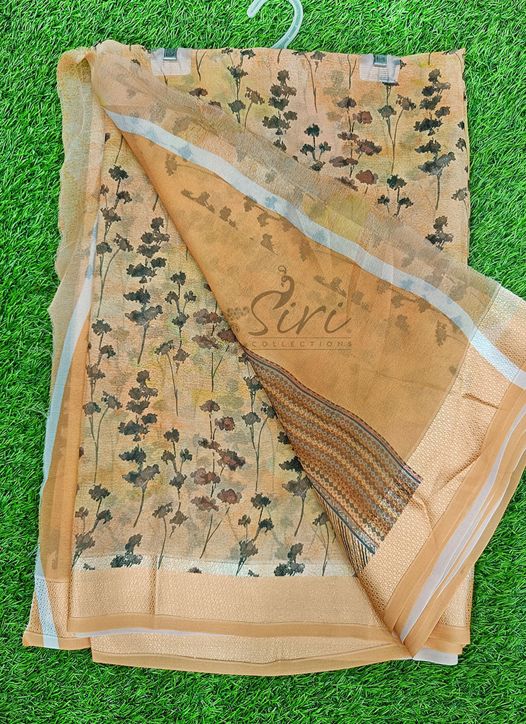Description: Lovely Digital Print Shimmer Chiffon Saree in Self Soft Borders