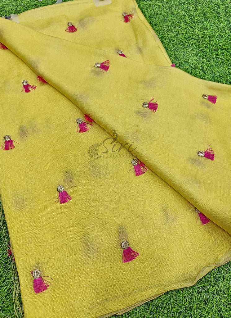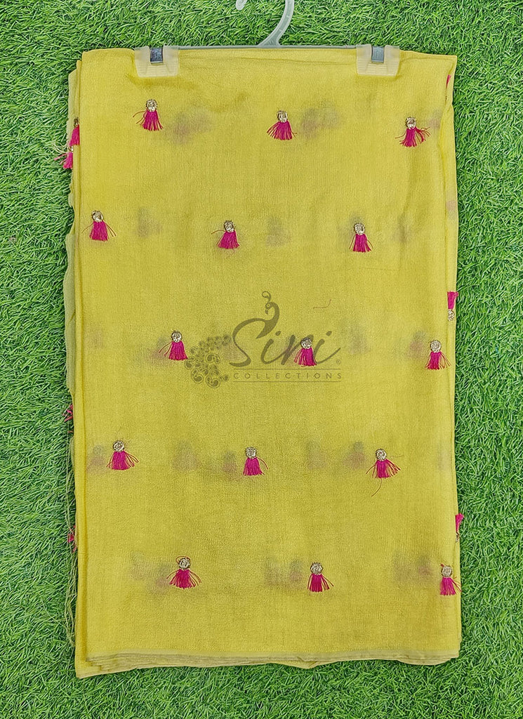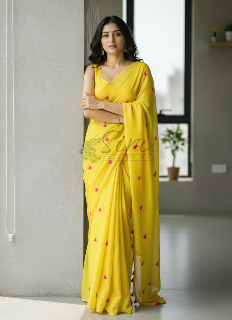 Lovely Jute Georgette Saree in Embroidery Tassel Butis
