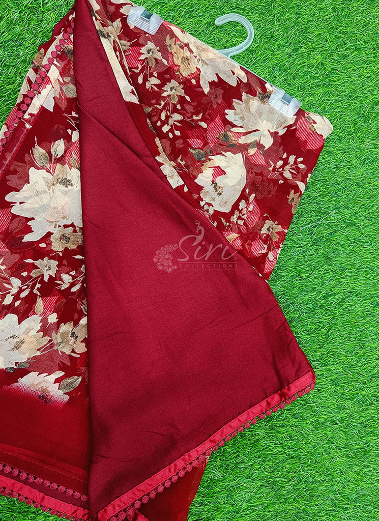 Description: Printed Georgette Saree in Small Fancy Crochet Lace