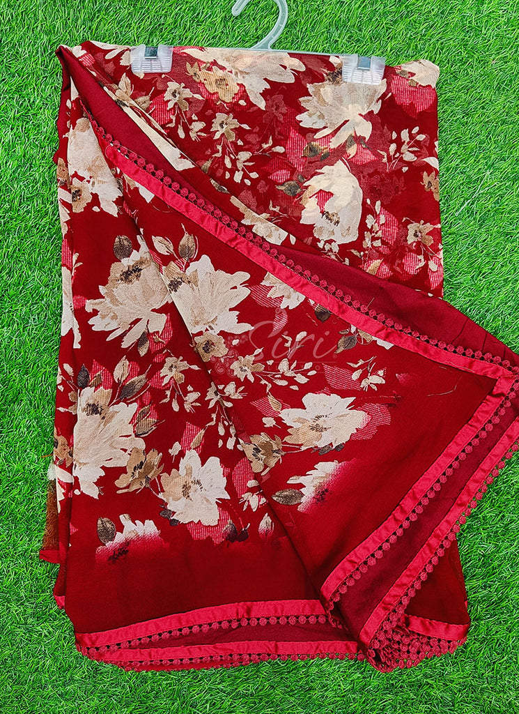 Printed Georgette Saree in Small Fancy Crochet Lace