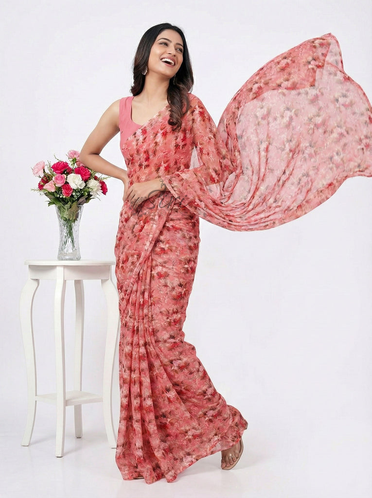 Description: Beautiful Lovely Digital Print Soft Siri Chiffon Saree
