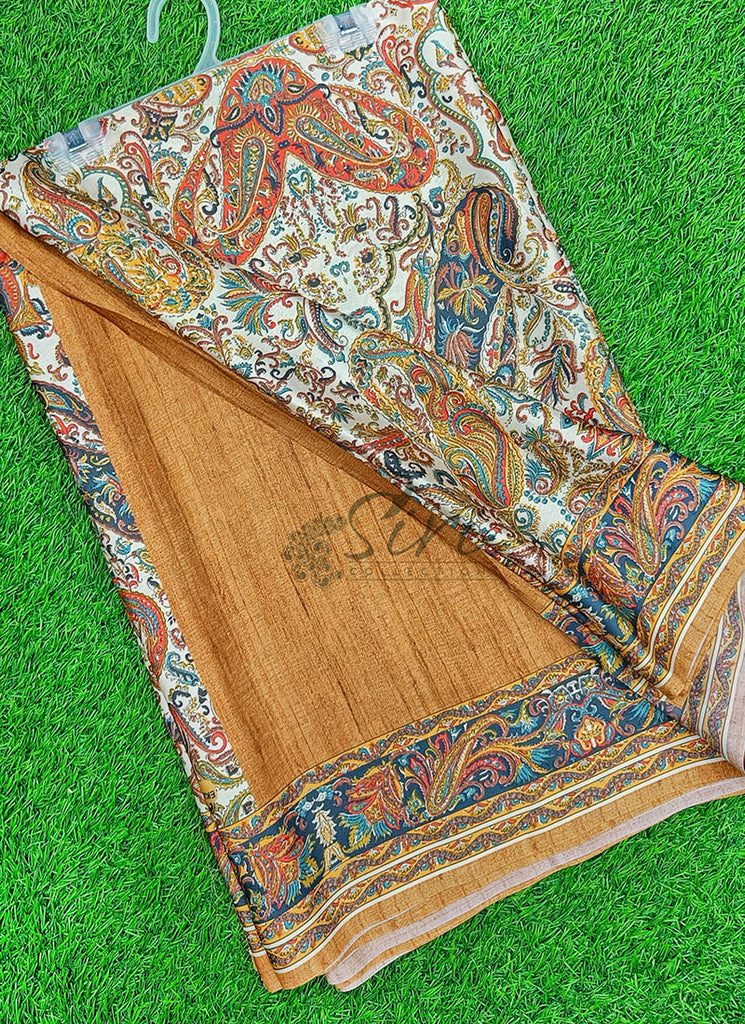 Description: Latest Beautiful Digital Print Satin Crepe Silk Saree
