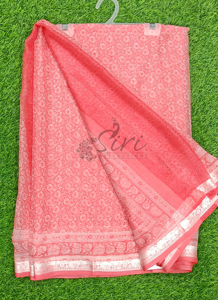 Description: Beautiful Printed Chiffon Saree with Silver Border