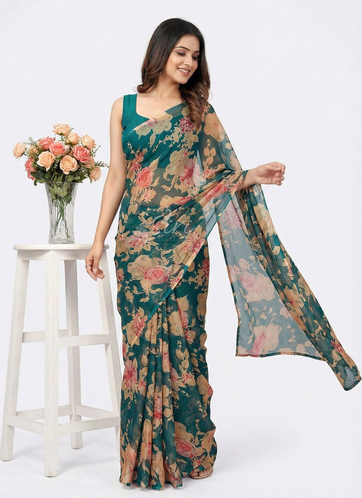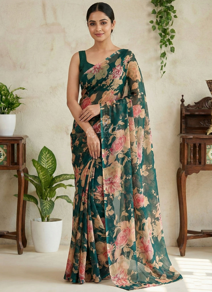 Description: Latest Beautiful Printed Nara Chiffon Saree
