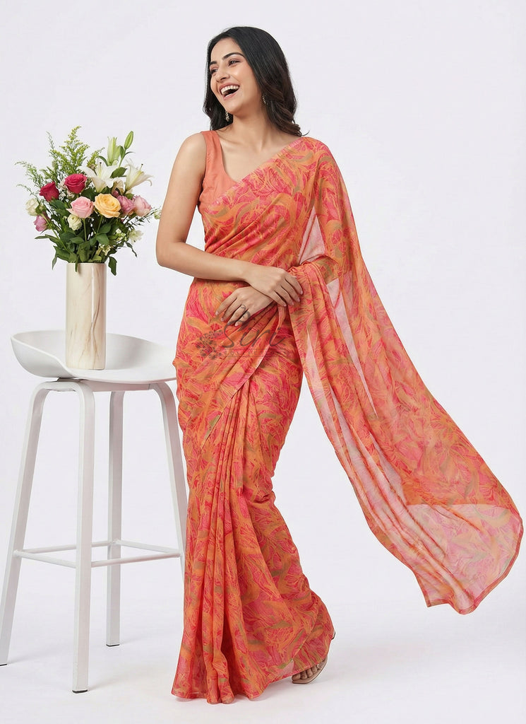 Description: Latest Beautiful Printed Nara Chiffon Saree