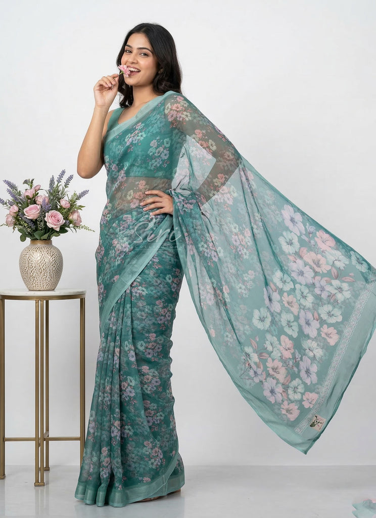 Beautiful Digital Print Soft Siri Chiffon Saree with Blouse