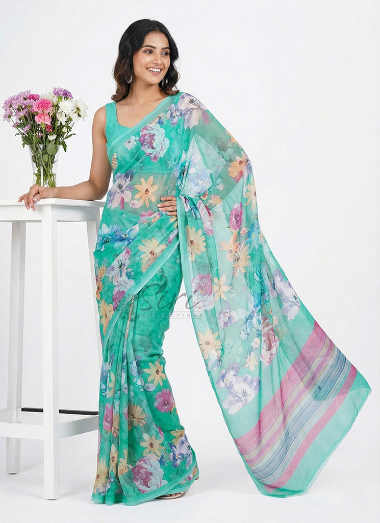 Beautiful Digital Print Moss Georgette Saree