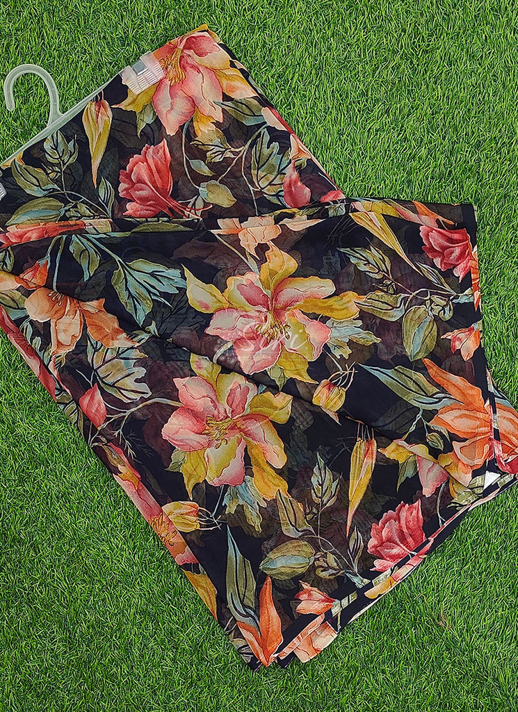 Description: Lovely Printed Georgette Saree in Floral Design